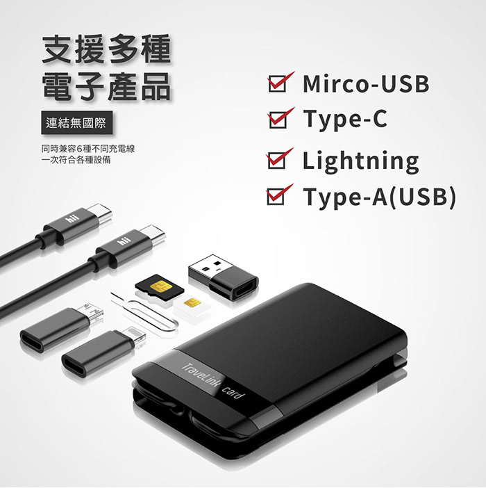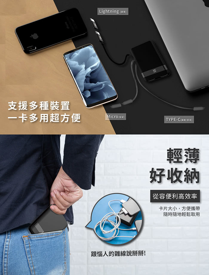 ■ 同時容納6種不同充電線(Type-C/Micro USB/lightning)